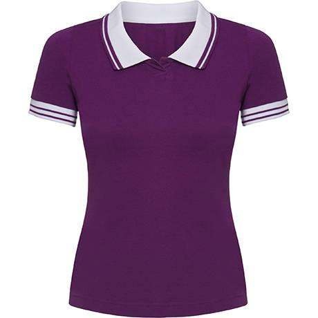 Damska koszulka polo z krótkim rękawem o dopasowanym kroju. Brak zapięcia przy kołnierzyku. Mankiety i kołnierzyk wykonane z dzianiny. Boczne rozcięcia oraz wydłużony tył. Szwy boczne.