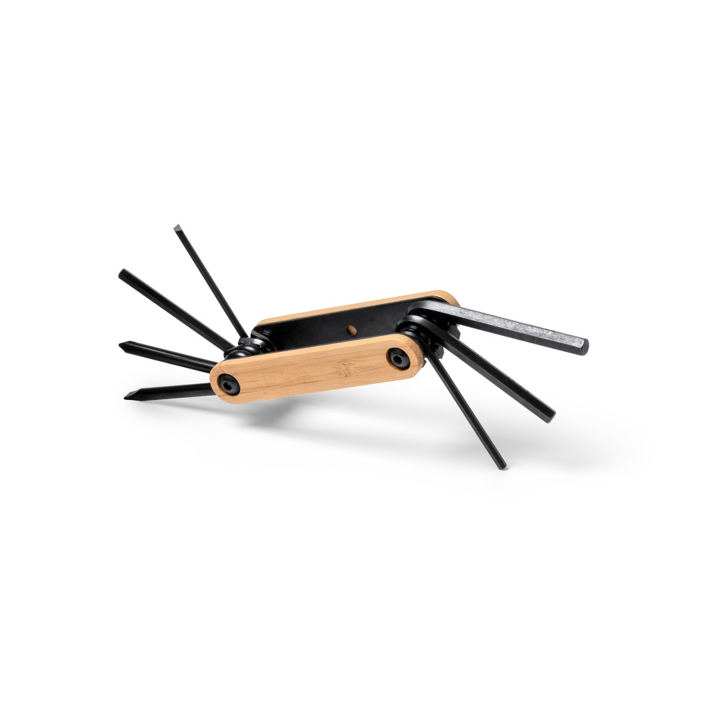 Wielofunkcyjne narzędzie z akcesoriami wykonanymi ze stali nierdzewnej. Dostarczane w ekologicznym opakowaniu.