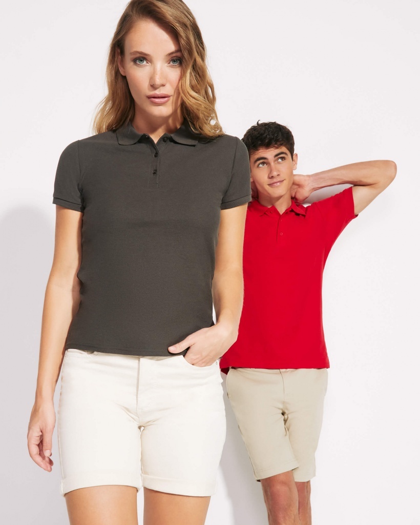 Klasyczna koszulka polo zapinana na trzy guziki. Posiada prążkowany kołnierzyk oraz mankiety, wzmocnione kryte szwy przy kołnierzyku oraz opcjonalną kieszeń.