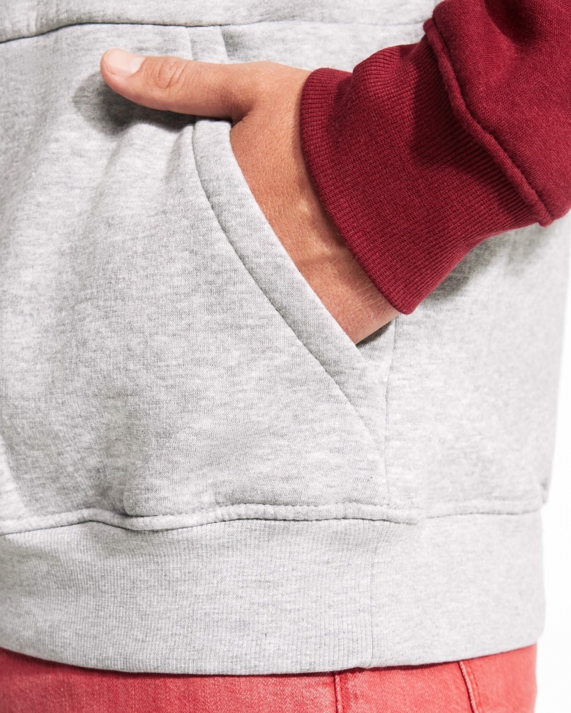 Uniwersalna bluza dwukolorowa unisex, zaprojektowana z komfortem i stylem. Kaptur z krzyżowanym kołnierzem wyposażony w metalowe oczka oraz kontrastowe wnętrze i sznurki. Praktyczna kieszeń typu kangurka oraz elastyczne ściągacze 1x1 przy mankietach i w talii zapewniają dopasowanie i wygodę noszenia.