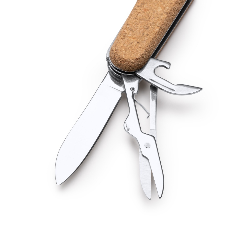 ROMAN - Wielofunkcyjny scyzoryk wykonany ze stali nierdzewnej z korkowym uchwytem