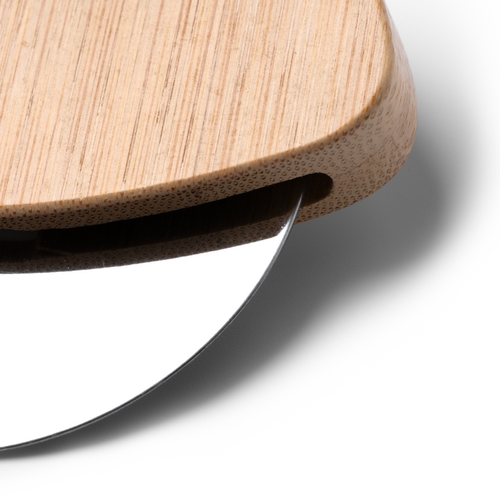 Nóż do pizzy z uchwytem z bambusa. Produkt dostarczany w ekologicznym pudełku.