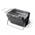 Przenośny grill na węgiel drzewny zrobiony ze stali nierdzewnej. Składany do rozmiaru teczki, zapakowany w opakowanie zaprojektowane z myślą o środowisku. Wyposażony w uchwyt do przenoszenia.