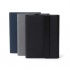 Wielofunkcyjna teczka z tkaniny RPET z magnetycznym zapięciem. Wyposażona w zintegrowany power bank o pojemności 5000 mAh z przyciskiem aktywacji do ładowania smartfona, w tym w technologii bezprzewodowego ładowania. Zawiera notatnik A5 z 64 arkuszami, etui na karty, stojak na smartfon oraz uchwyt na długopis.