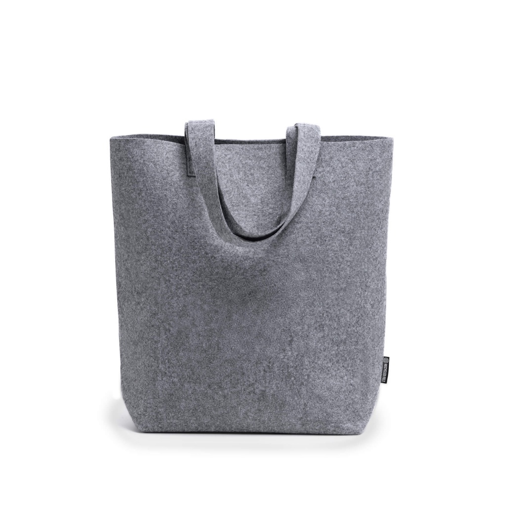 Praktyczna torba z filcu z recyklingu, wyposażona we wzmocnione uchwyty o długości 70 cm.