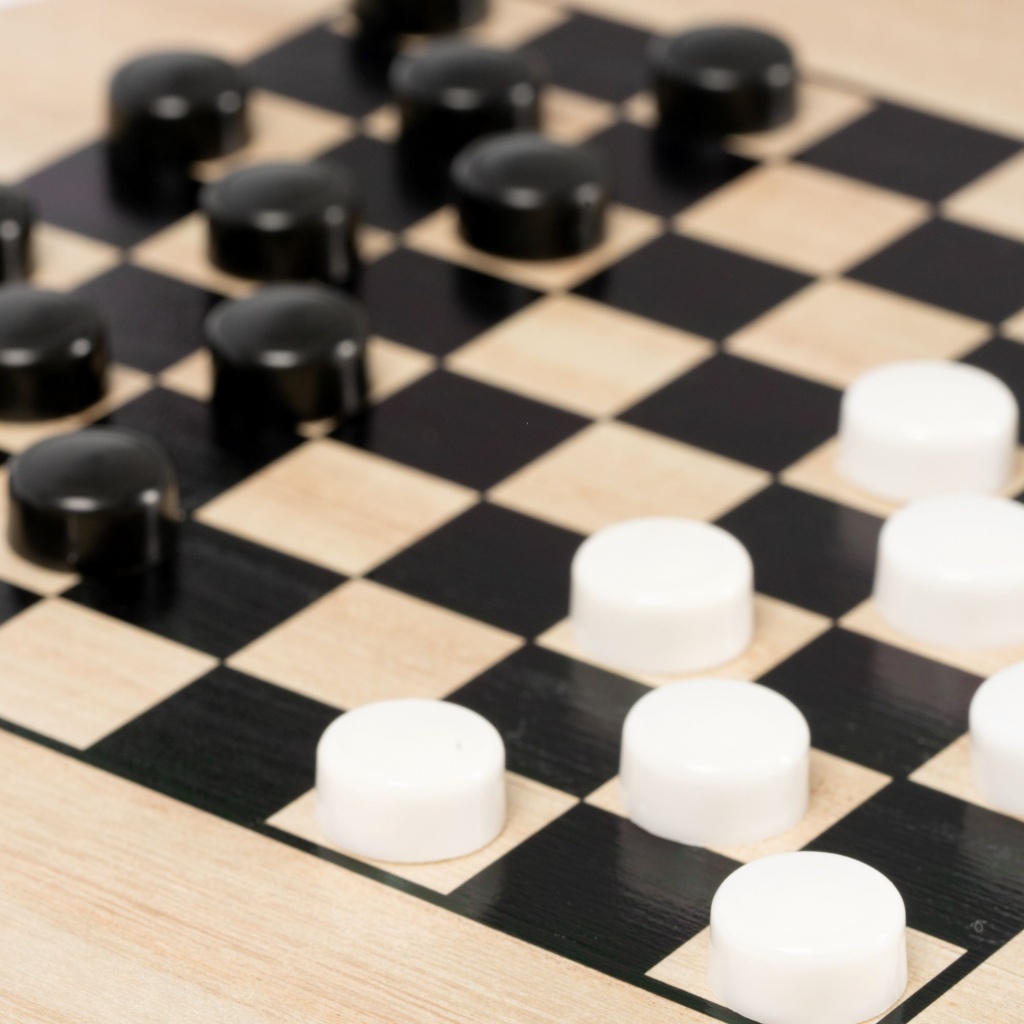 Zestaw paletek plażowych wykonanych  z drewna  i włókna pszenicznego, zawiera plansze do gry w szachy, warcaby i chińczyka oraz komplet pionków.