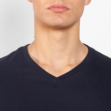 T-shirt z krótkim rękawem. Dekolt w szpic. Czterowarstwowy ściągacz przy szyi, wzmocnione, kryte szwy przy kołnierzyku i na ramionach. Szwy boczne.