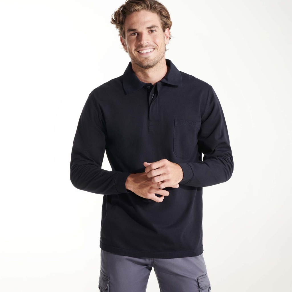 Polo z długimi rękawami wykonane z materiału trudnopalnego, zapewniające ochronę i komfort użytkowania.
