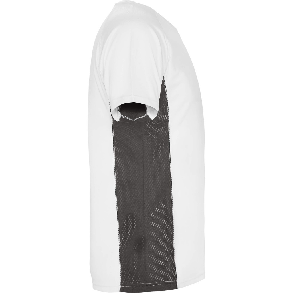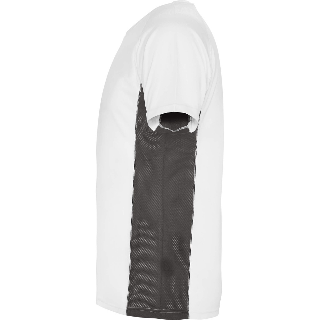 Dwukolorowa koszulka techniczna z krótkimi raglanowymi rękawami. Panele boczne i pachy wykonane z mikroperforowanej tkaniny. Okrągły dekolt wykończony wzmocnionymi, krytymi szwami. Przyjemna w dotyku tkanina o dopasowanym kroju.