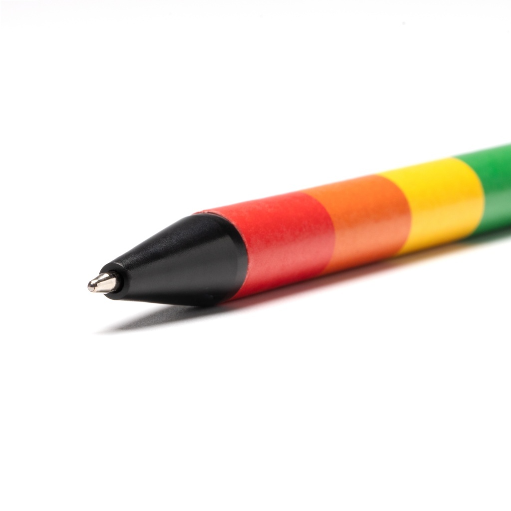 Wielokolorowy wysuwany długopis. Niebieski atrament.