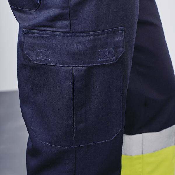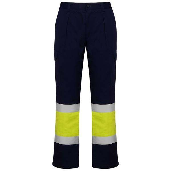 4. Dwukolorowe spodnie wykończone odblaskowymi pasami.