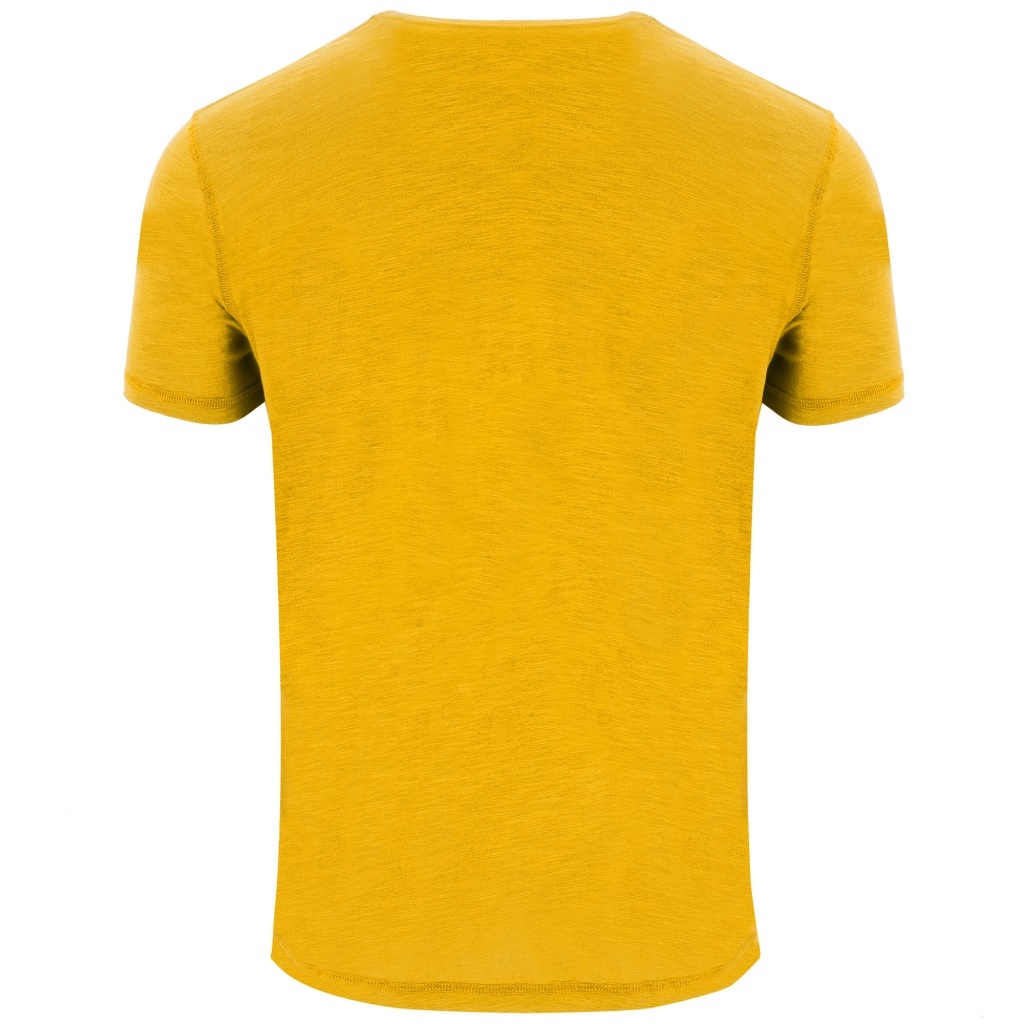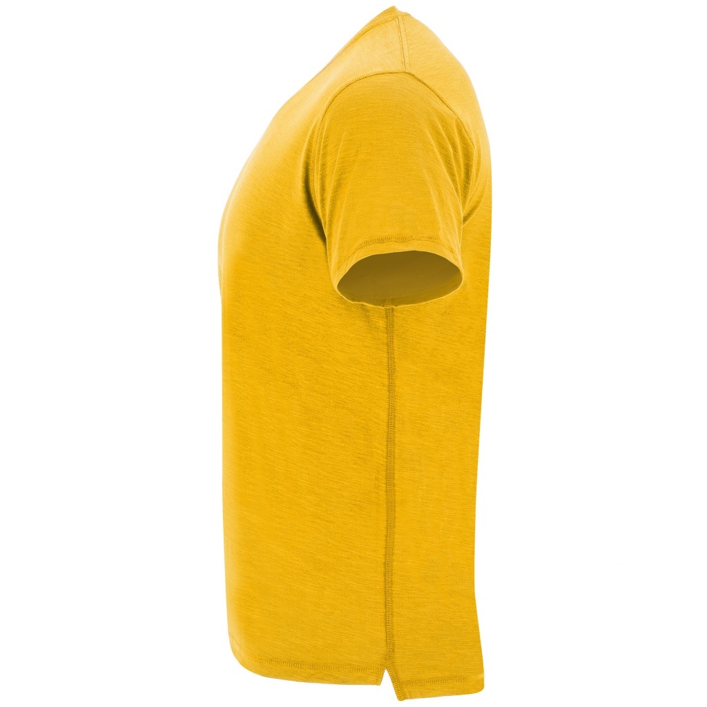 Krótki rękaw, wykonana z tkaniny vigore. Okrągły dekolt z tej samej dzianiny. Wewnętrzne, kontrastujące szwy przy ramionach. Boczne ozdobne szwy z rozcięciami po bokach. Tył koszulki jest nieco dłuższy niż przód.