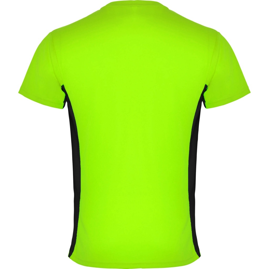 Dwukolorowa koszulka techniczna z krótkim rękawem. Okrągły kołnierzyk, kryte szwy wokół karczku. Kontrastowe wstawki po bokach. Materiał łatwy w praniu, szybkoschnący i oddychający.