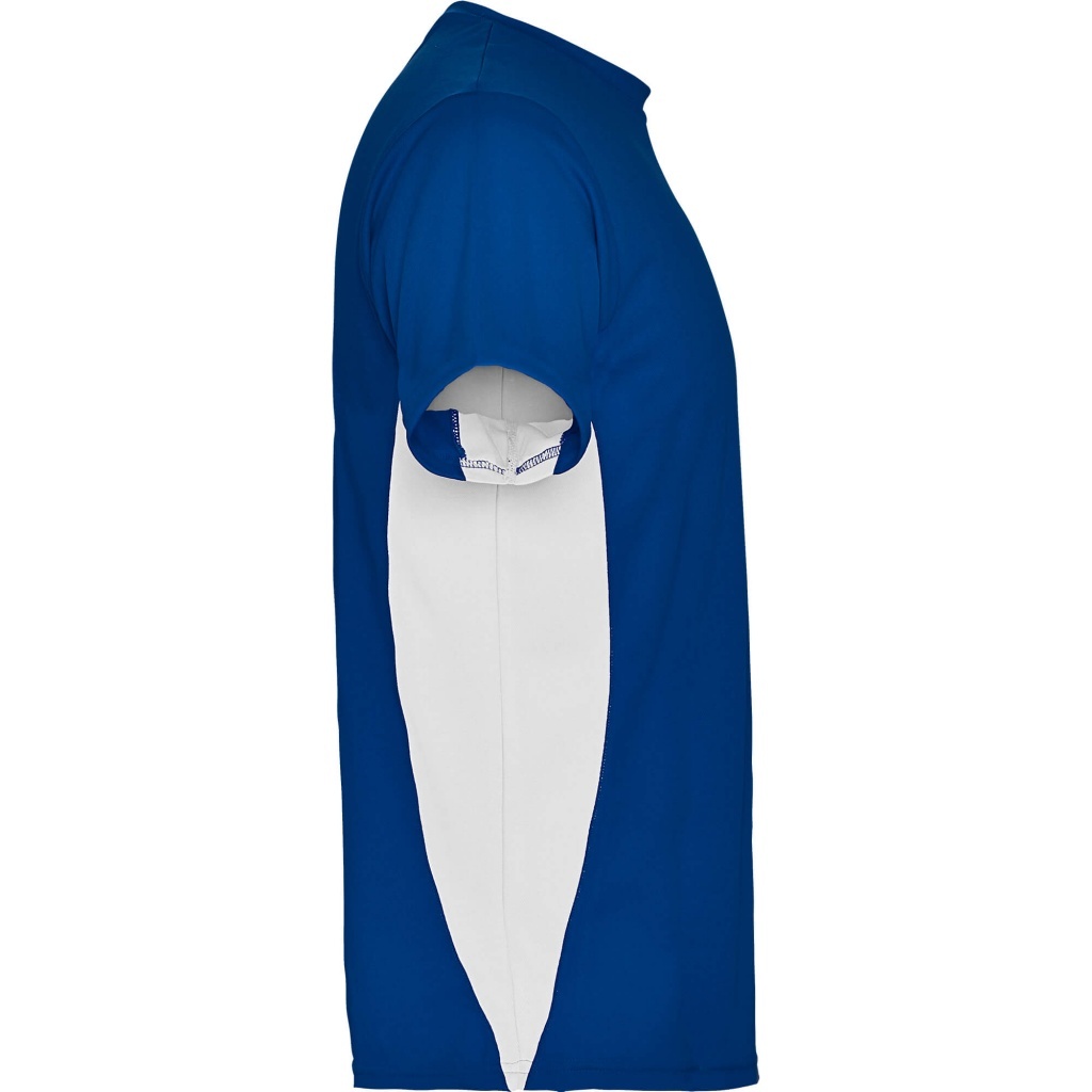 Dwukolorowa koszulka techniczna z krótkim rękawem. Okrągły kołnierzyk, kryte szwy wokół karczku. Kontrastowe wstawki po bokach. Materiał łatwy w praniu, szybkoschnący i oddychający.