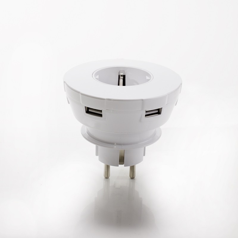 Przekształć swoje gniazdko w praktyczną stację ładującą dzięki zasilaczowi USB. Dużą zaletą jest możliwość jednoczesnego korzystania z gniazda zasilania.