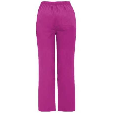 Długie spodnie unisex o prostym kroju nogawki. Pas z gumką, zapinany na guzik i zamek. Tylnia kieszeń.