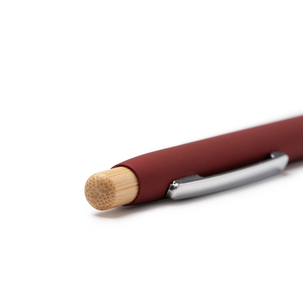 • Verso - Metalowy długopis o gumowym wykończeniu z przyciskiem i detalami wykonanymi z bambusa.