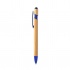 Długopis z korpusem i przyciskiem z naturalnego bambusa. Elementy dekoracyjne w kolorze z chromowanym efektem oraz dopasowany wskaźnik dotykowy. Wyposażony w pojemny wkład z niebieskim atramentem, zapewniający płynne pisanie i dłuższą żywotność.