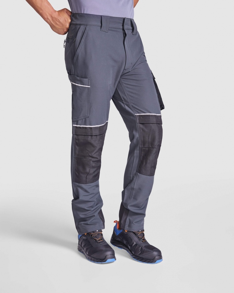 • WALL - Elastyczne spodnie robocze z poliestru z wieloma kieszeniami, gramatura: 260 g/m².