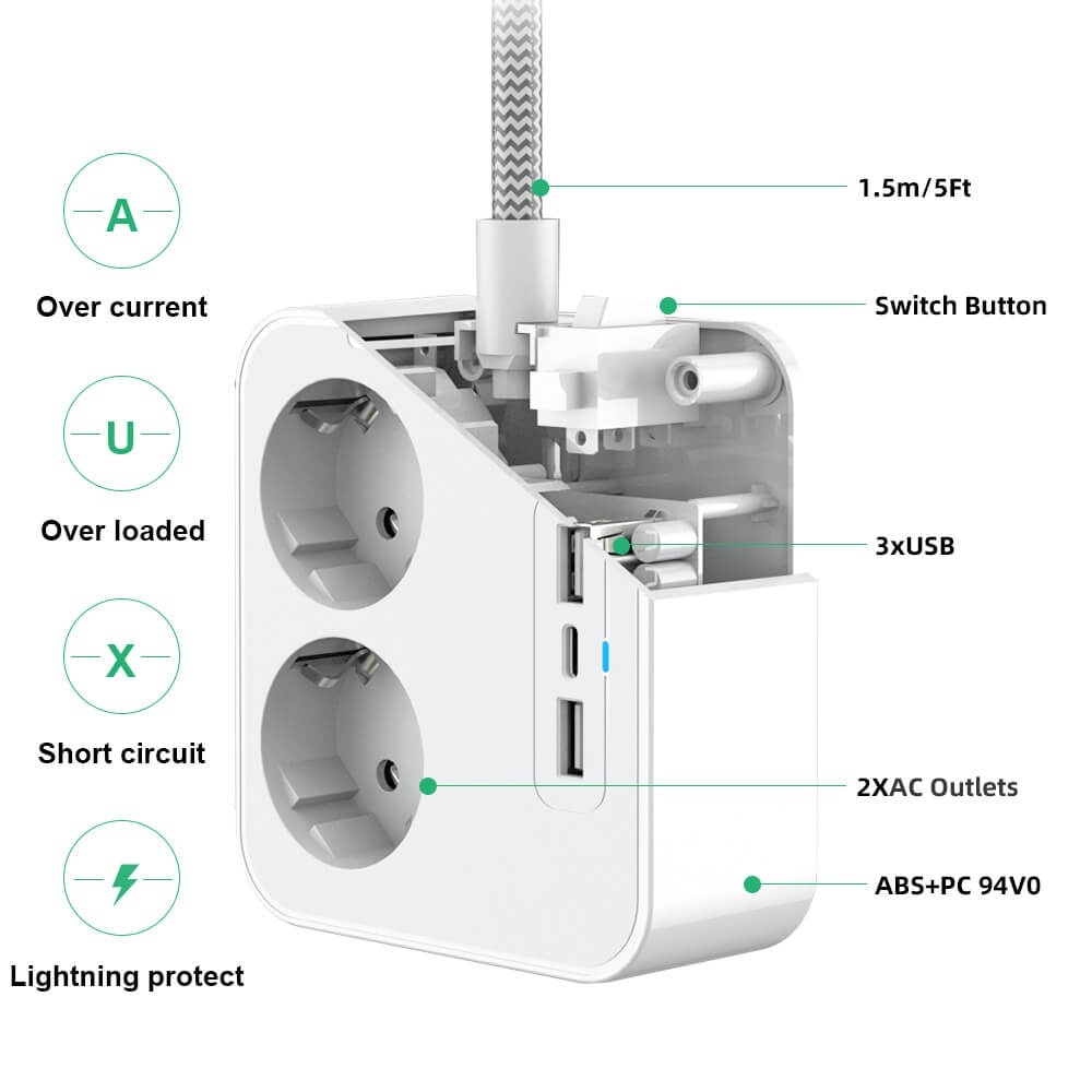 Szukasz niezawodnego źródła energii? Poznaj Wally — praktyczne i stylowe gniazdko, które ułatwi ładowanie wielu urządzeń jednocześnie. Urządzenie zawiera: