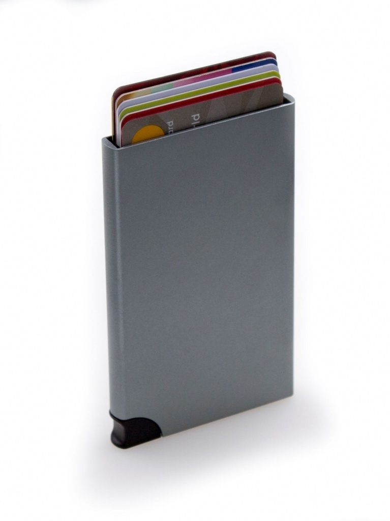 Aluminiowa podstawa Wally'ego skutecznie chroni karty, jednocześnie zachowując niewielkie wymiary, dzięki czemu etui zmieści się w każdej kieszeni.