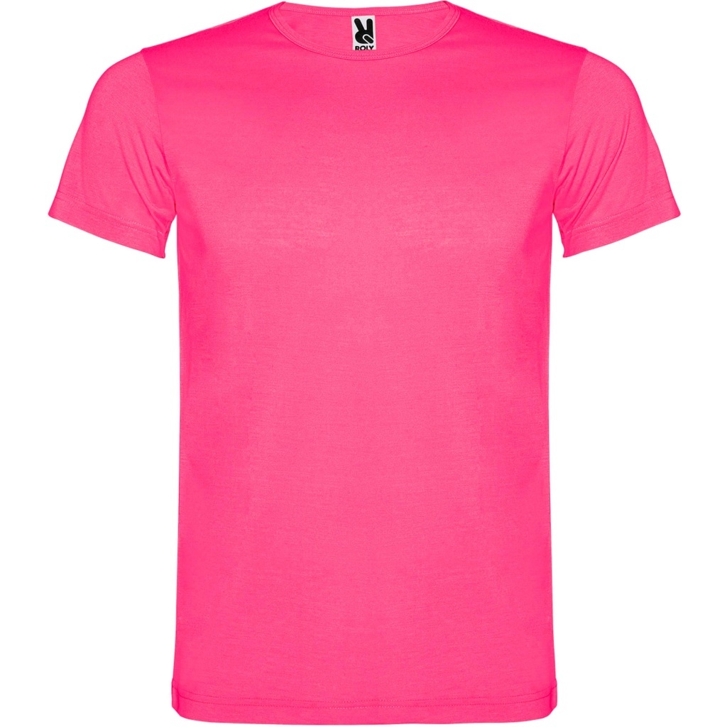 Koszulka z krótkim rękawem. Okrągły dekolt, wzmocnione kryte szwy. Fluorescencyjne kolory. Koszulka wykonana z tkaniny poliestrowej przypominającej w dotyku bawełnę.