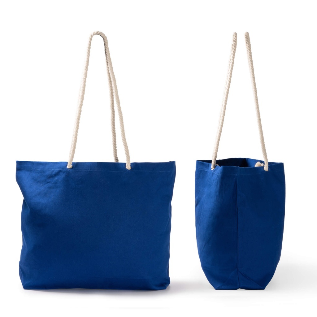 Torba plażowa wykonana w 100% z bawełny o gramaturze 260g/m². Wytrzymałe sznurki o długości 90cm wykonane z bawełny.