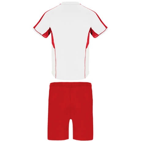 Sportowy komplet składający się z koszulki i spodenek. Doskonały jako odzież sportowa i strój do treningu. Wykonany ze specjalnie oddychającej tkaniny, odpowiedniej do różnego rodzaju aktywności fizycznej.