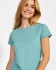 Fitted short-sleeved T-shirt for women made of OCS certified organic cotton. It features a ribbed 1x1 neckline and reinforced covered seams at the collar.