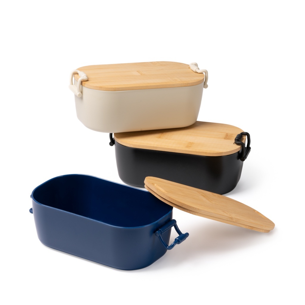 Practical lunch box featuring a polypropylene body and a bamboo lid with safety closure — a durable, eco-conscious choice for everyday meals.