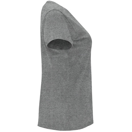 Short-sleeve women's t-shirt with a fitted cut. Features a 1x1 ribbed crew neck and reinforced covered seams at the neck.