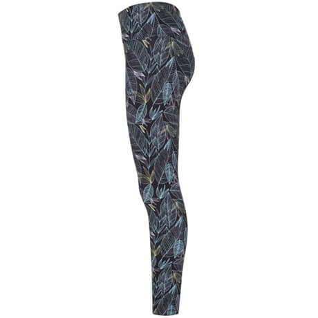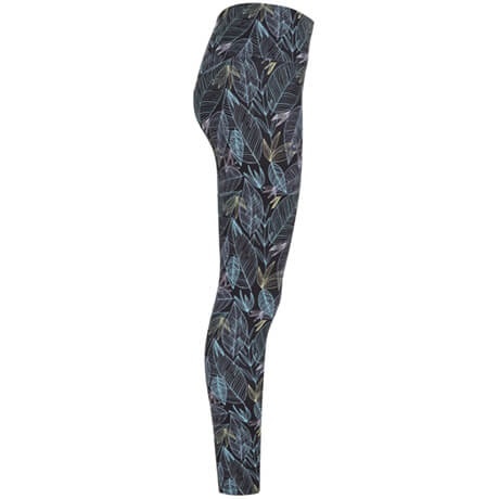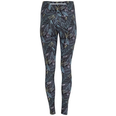 Ladies' ankle-length printed leggings with an adjustable high waist. Features a back pocket in the waistband with a reflective band.