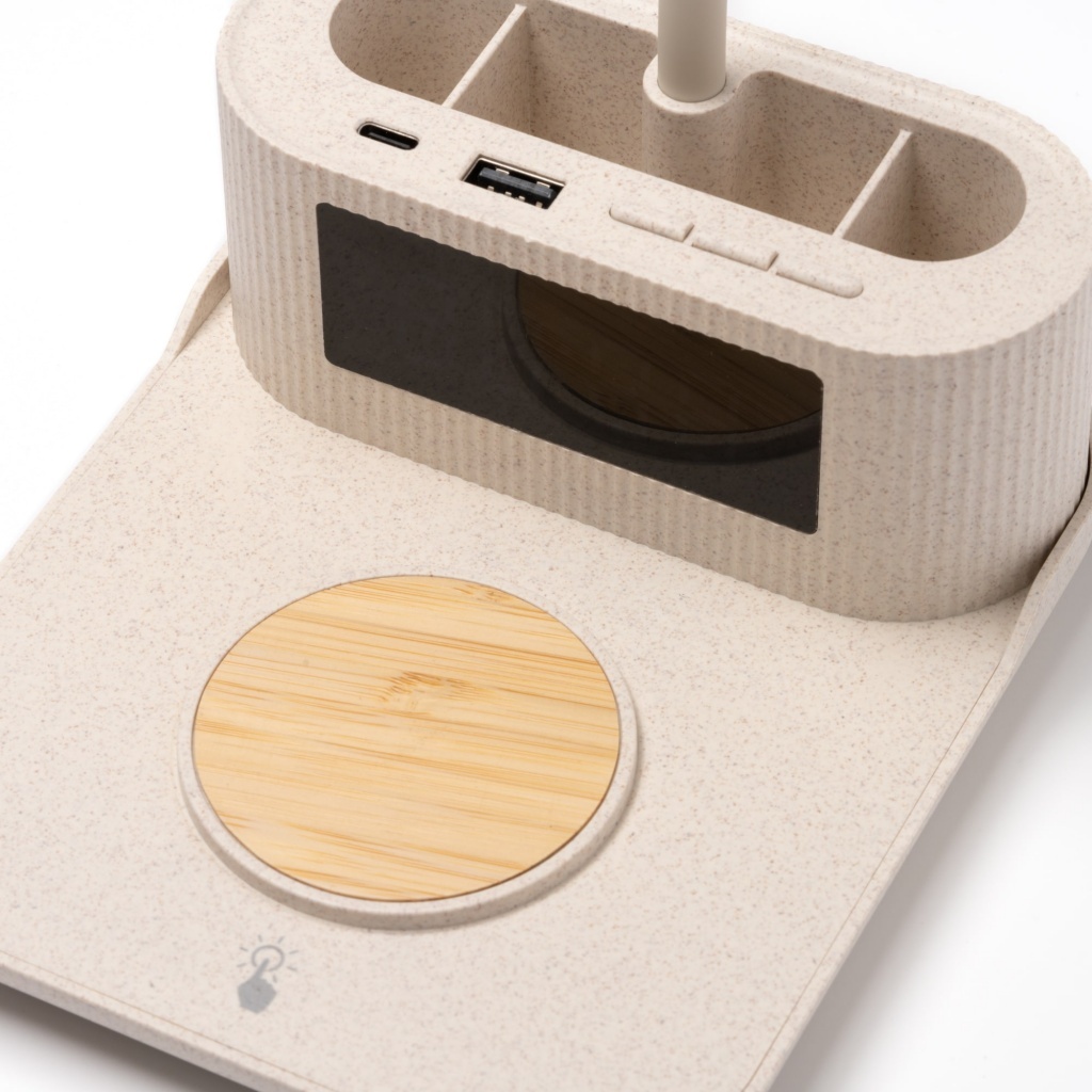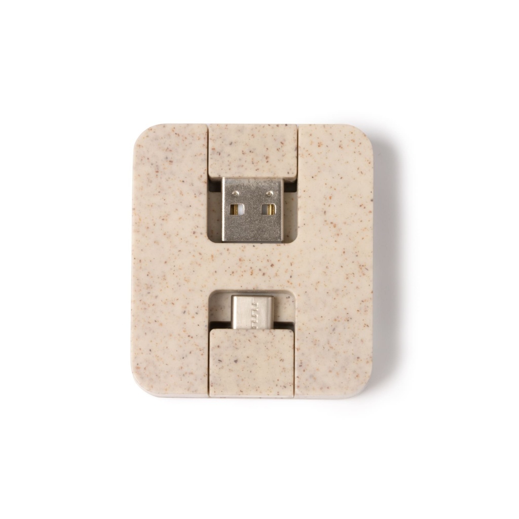 USB hub constructed from bamboo and wheat fiber. Input connectors: 2 x USB type C and 2 x USB. Foldable USB and USB type-C outputs.