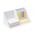This cube-shaped cardboard desk set includes a pencil, a notepad (250 sheets) and 180 sticky notes in different colors.