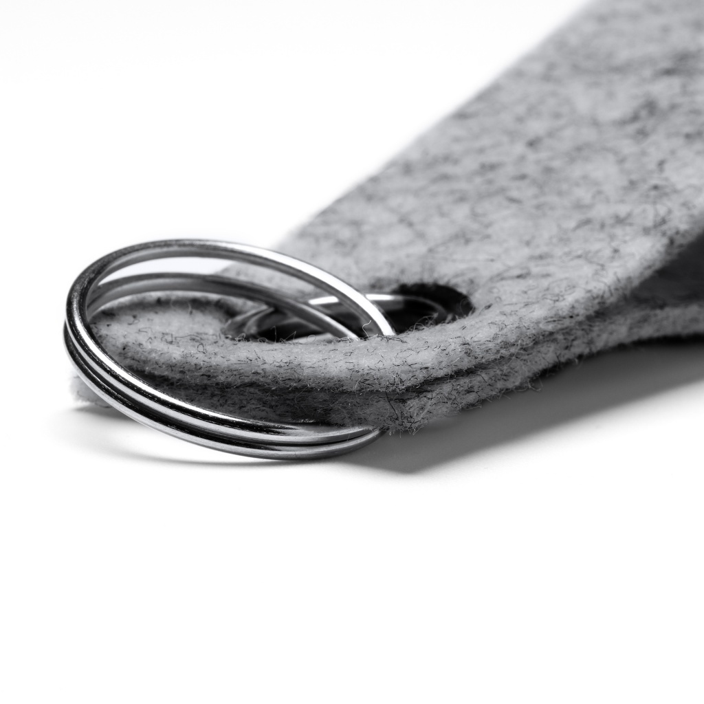 The rectangular key ring made of felt with a vigore design is a practical and sustainable accessory to carry your keys in style.