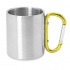 Metal mug featuring a double wall and a carabiner handle, offered in various colours.