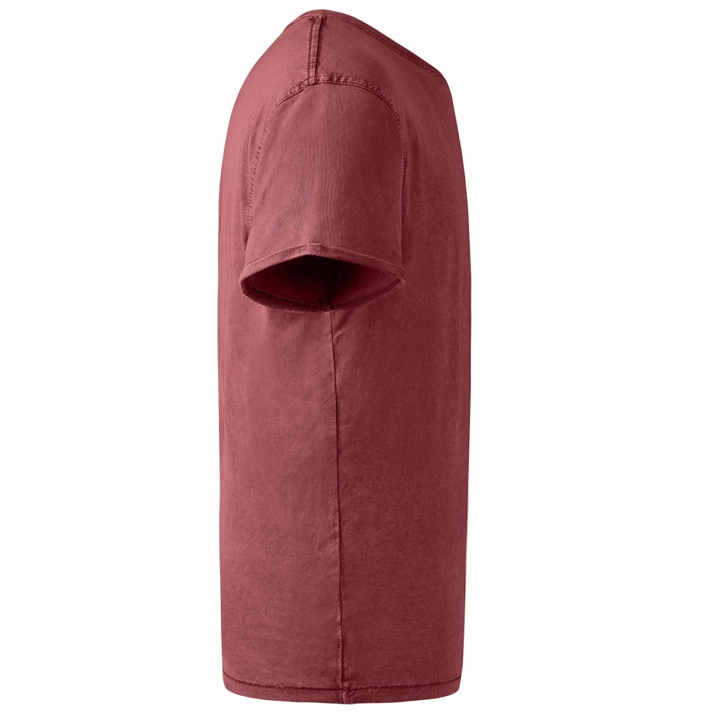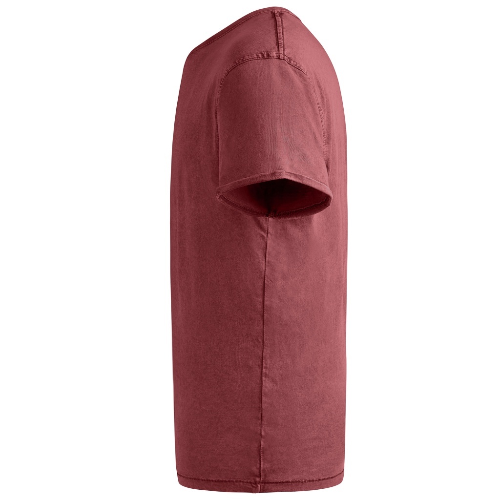 Short-sleeve t-shirt with a jeans effect. Features a 1x1 rib crew neck and reinforced cover seams from shoulder to shoulder, plus a double seam on the armholes. Sleeve openings are finished with a hem.