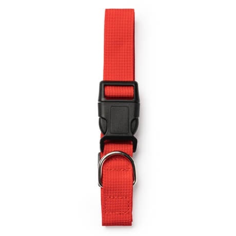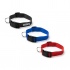Adjustable pet collar crafted from durable, soft polyester. Features a click-closure buckle and a metal ring for leash attachment.