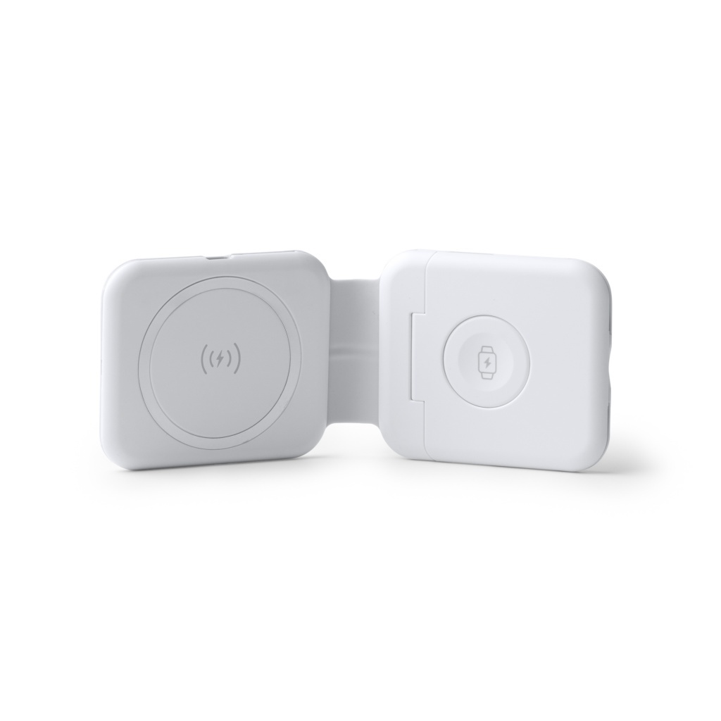 • LAREDO - Foldable wireless charger for smartphones, wireless headphones and smartwatches with cable included.
