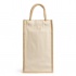 Laminated jute and cotton bag. Features a double compartment and reinforced handles for secure transport. Perfectly sized to carry two bottles.