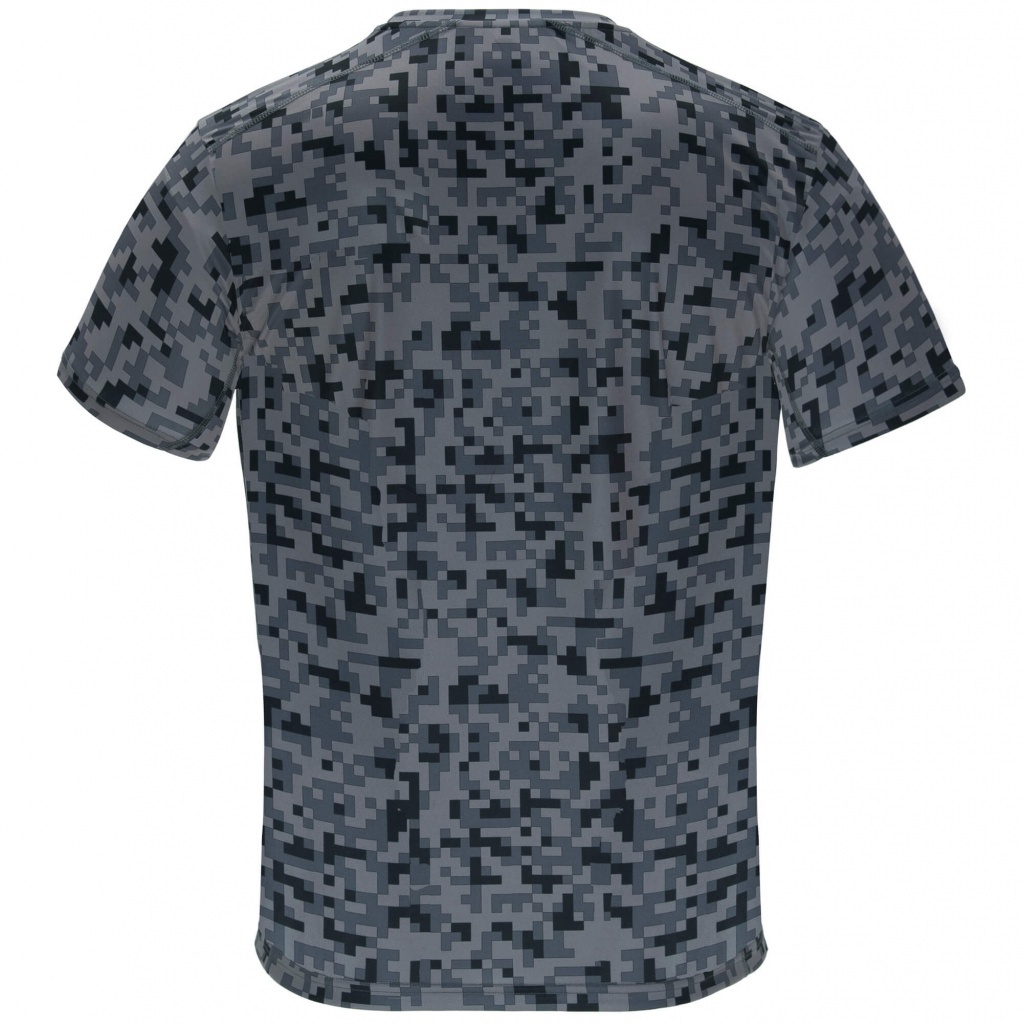 Short-sleeve printed technical shirt featuring a crew neck with reinforced covered seams in contrast fluor yellow. Side panels on the inside of the sleeve and on the shoulders are finished with tone overlock.