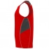 Lightweight technical tank top featuring reflective accents. Round neck with reinforced covered seams. Constructed from two polyester fabrics in three colours. Main body in interlock fabric, side and upper panels in microperforated fabric to enhance breathability. Fast-drying.