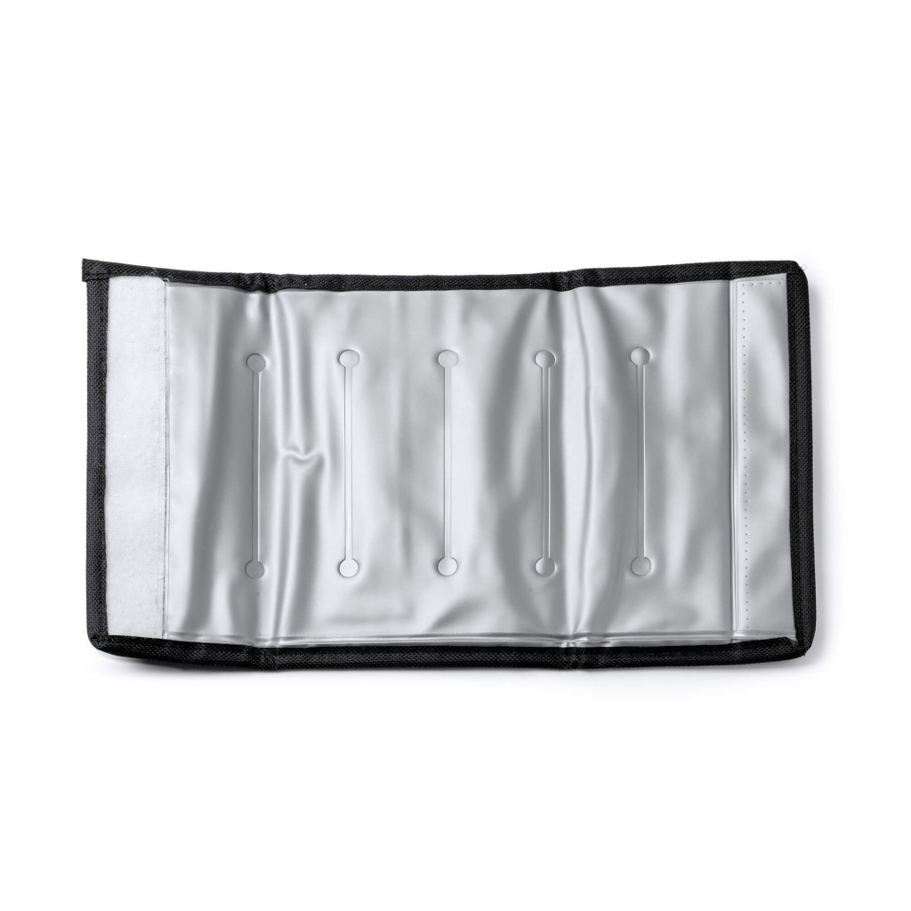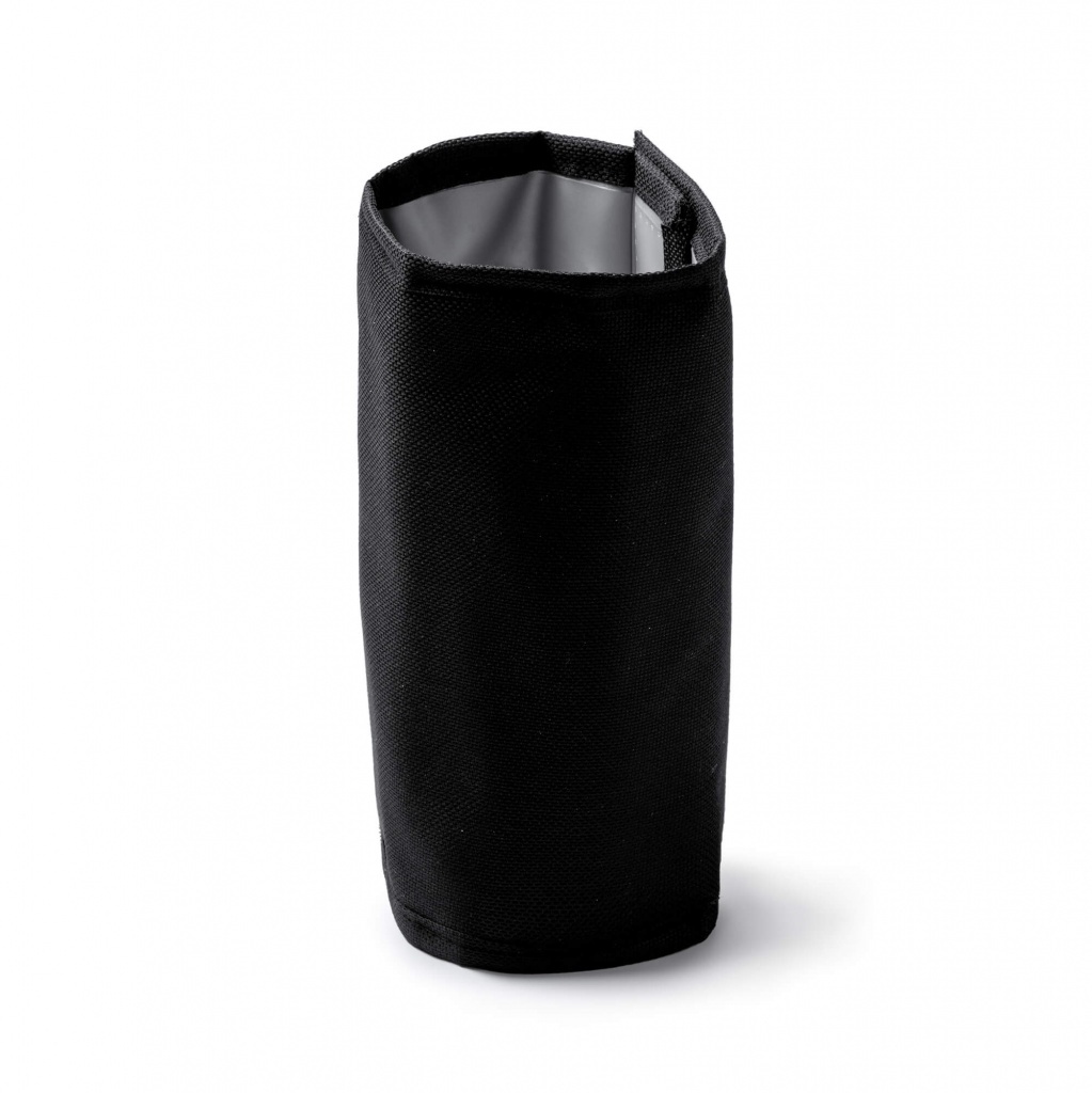 Bottle cooling sleeve designed to fit bottles, made of RPET fabric, with an adjustable Velcro fastening.