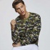 Long sleeve t-shirt with camouflage print and a crew neck. No cuffs. Reinforced 4-layer covered seams at the neck and shoulders. Side seams. A T-shirt with a trendy print that will enhance your wardrobe—dare to choose the Marlo camouflage design. Suitable for any occasion. Available in green and gray.