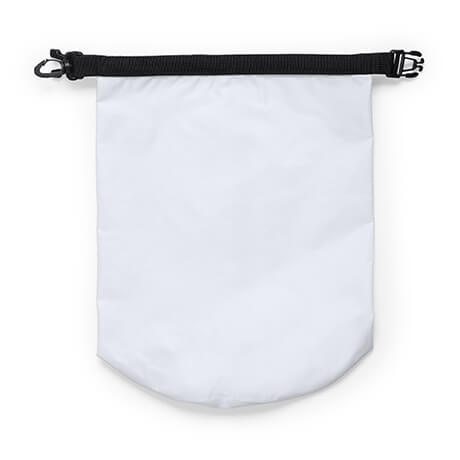 Durable waterproof bag in ripstop fabric with a watertight click closure, a carabiner and an adjustable shoulder strap for easy carrying.