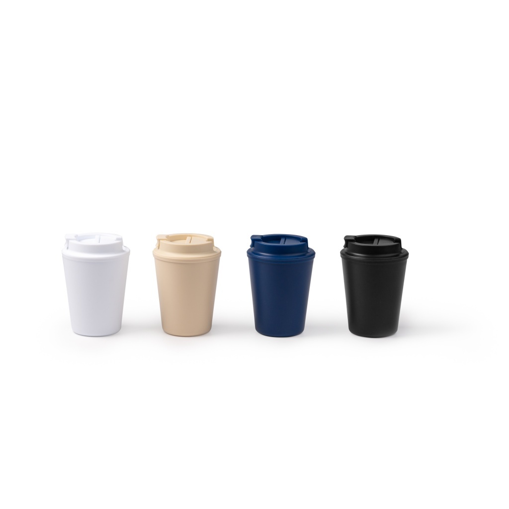 Practical mug with a PP body and screw-on lid featuring a spout for easy drinking. With a 300 ml capacity, it suits both hot and cold beverages and its compact, functional design makes it convenient to take anywhere.