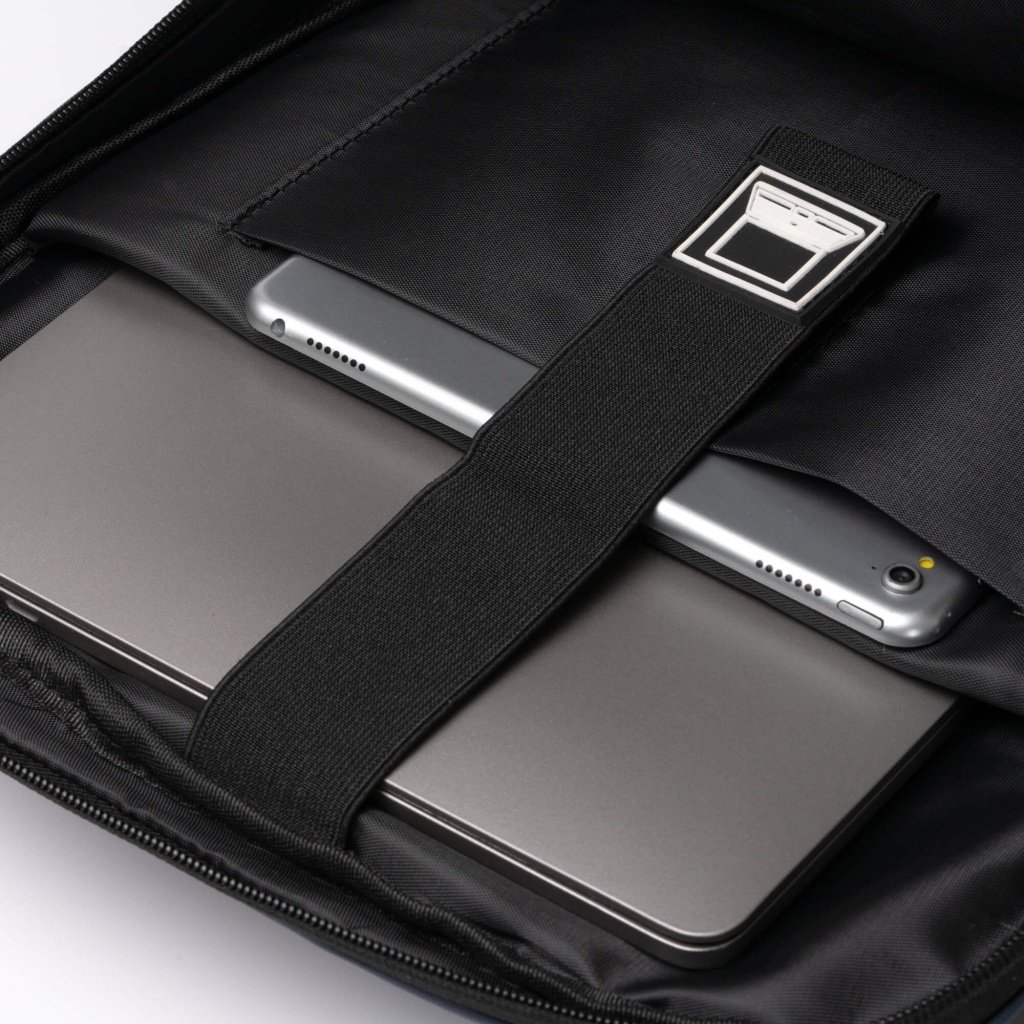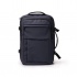 Compact and foldable PU leather backpack designed for everyday use and travel. It offers generous storage and comfortable carrying with a padded back, cushioned shoulder straps, and a convenient stroller strap. The main compartment includes a zippered mesh divider plus multiple inner pockets for organizing small essentials. A front compartment contains additional pockets and a strap with an integrated key ring to keep keys secure. There is a front pocket for quick-access items and a rear pocket with a double-padded compartment that fits a laptop up to 15 inches alongside another electronic device. Side carabiners let you adjust the pack’s volume, and an expansion zipper increases capacity when needed. An external battery connection cable is located on one side. Padded panels protect personal items, and the shoulder straps are adjustable for a customized fit.