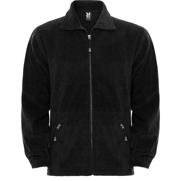 Fleece jacket, with high necked lined collar and matching full zipper. Side pocket with zipper, elastic cuffs and waist with side adjusters.