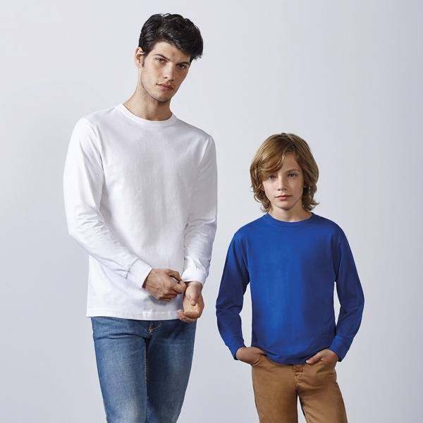 Classic kids long sleeve t-shirt made in tubular fabric, featuring a 4-layer collar and 1x1 rib cuffs. Collar and shoulder seams are reinforced with covered stitching for added durability. POINTER is more than just clothing — it's a sensible choice for cooler days. A versatile long sleeve tee that offers many wearing options as temperatures fall.