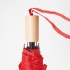Foldable RPET umbrella supplied with a matching pouch. The shaft, ribs and tips are black, complemented by a natural wood handle and matching velcro fastening. Manual opening. 95 cm diameter.
